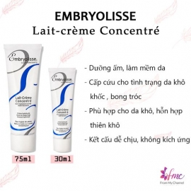 EMBRYOLISSE LAIT CRÈME CONCENTRÉ - SAY BYE MỌI NỨT NẺ, TẠM BIỆT LÀN DA KHÔ KHỐC CẤP TỐC Một sản phẩm chăm sóc da tuyệt vời, dưỡng ẩm “cấp nước” cấp tốc cho làn da khô căng và nhạy cảm nhất. Embryolisse Lait – Crème Concentre của hãng Embryolisse là bước dưỡng ẩm ..