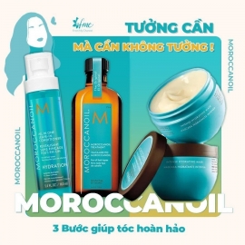 Tóc trông mượt mà óng ả hơn không quá khó, vì đã luôn có sẵn các bước dưỡng tóc Moroccanoil. Moroccanoil nổi tiếng trong giới HairCare không chỉ một mà tất cả các sản phẩm của hãng đều có khả năng gỡ rối ổn, khô nhanh, không gây bết dính, bonus mùi hương ngọt dịu, lưu hương lâu trên tóc. Thành phần chính là Dầu Argan dưỡng ẩm..
