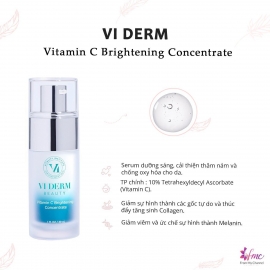 Nghiện Vitamin C thì đừng bỏ qua VI DERM Vitamin C Brightening Concentrate – Tinh Chất làm sáng da này mọi người nhé ! Tinh chất Vitamin C đậm đặc, tác động mạnh mẽ . Thành phần chính - 10% Tetrahexyldecyl Ascorbate ( THD ) - một dạng Vitamin C : - Giảm viêm, dưỡng da trắng sáng. Làm mờ thâm mụn và ức chế sự hình thành Melanin. - Giảm c..