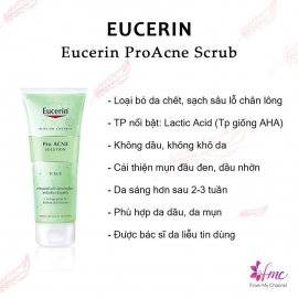TẨY TẾ BÀO CHẾT CHO DA DẦU MỤN Eucerin ProAcne Scrub Làn da muốn khỏe trước hết phải sạch đã. Mỗi ngày tuy đã rửa mặt làm sạch da nhưng các lớp tế bào chết luôn được thải ra và sữa rửa mặt hay tẩy trang không thể loại bỏ hoàn toàn, sẽ dẫn đến tình trạng tồn đọng, bít các lô..